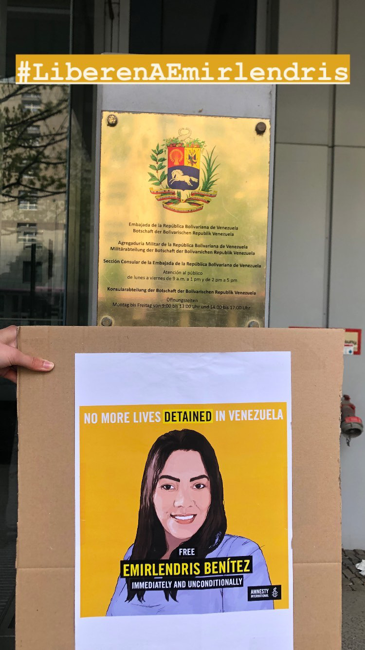 Mahnwache gegenüber der Botschaft der Bolivarischen Republik Venezuela für Emirlendris Benítez.
